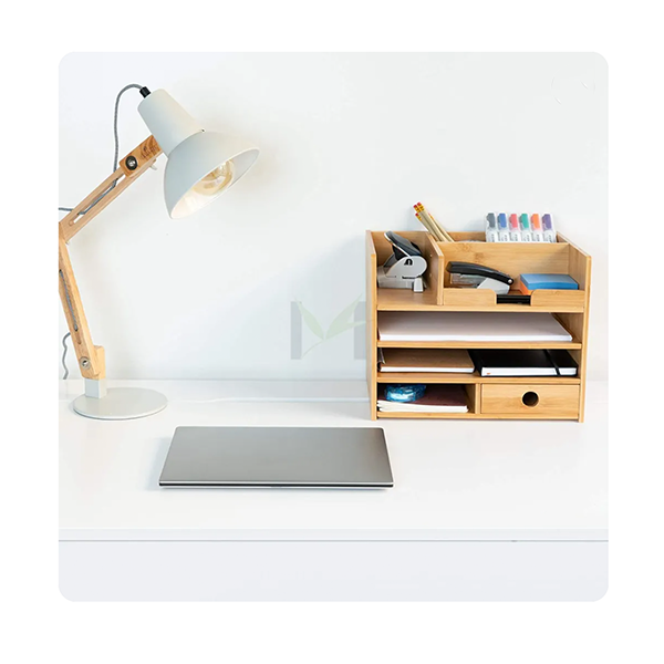 100% Original Bamboo Desk Organizer, Bamboo Desk Tabletop Storage Organization Box with File Organizer