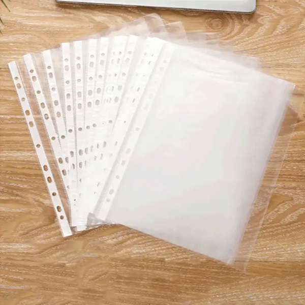 100pcs Transparent Filing11 Hole Loose Leaf Plastic Insert Document Protective Film Punch Clip White Strip Ring Binder File Bag