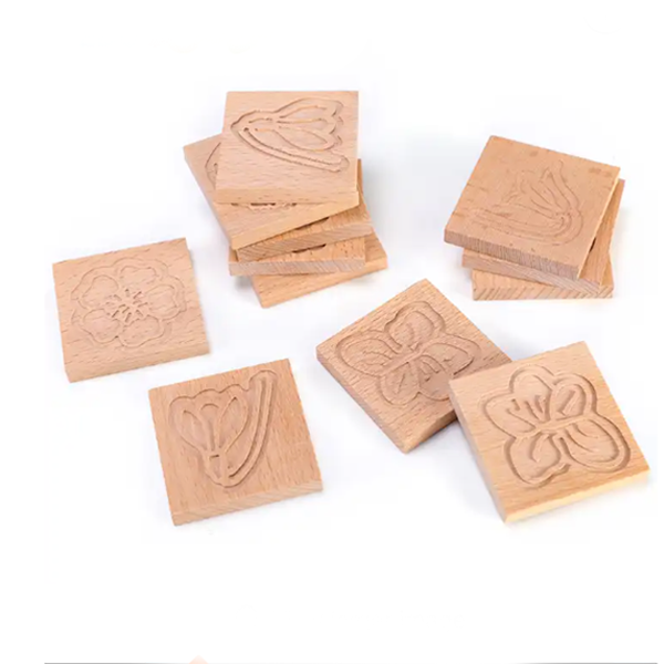 12 pcs DIY Montessori Wooden Leaf Flower Stamp Seal Set Sensory Printing Kids Educational Painting Decoration Toys