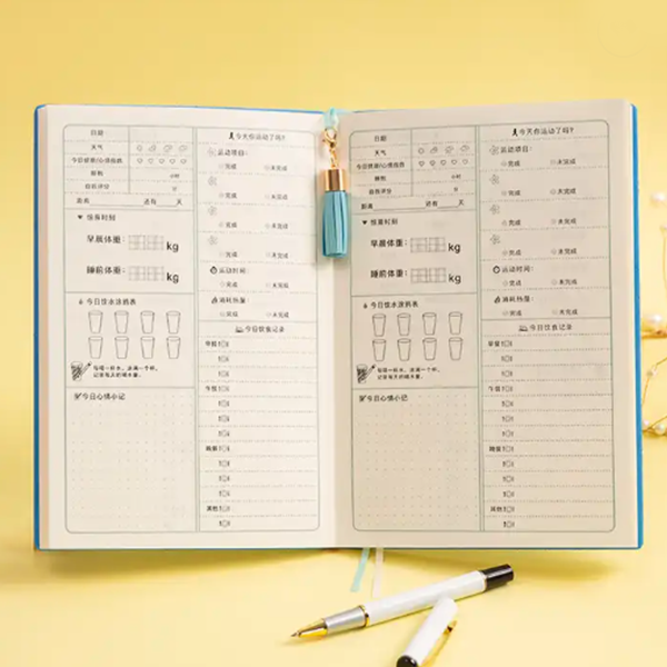 2022 Daily Weightloss A5 Wellness Note Book Custom Fitness Journal Meal Planner Notebook