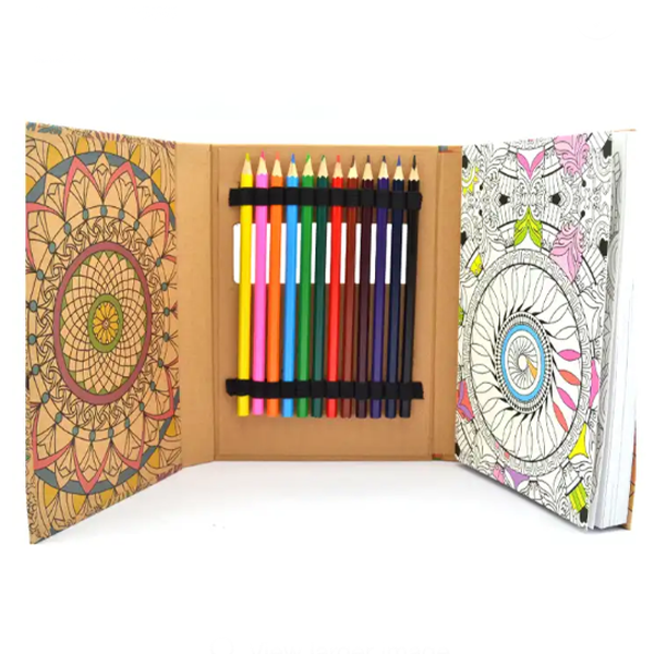 2023 cheap wholesale custom Eco-friendly fashion Kraft paper Coloring book with pencil set for child and adult painting