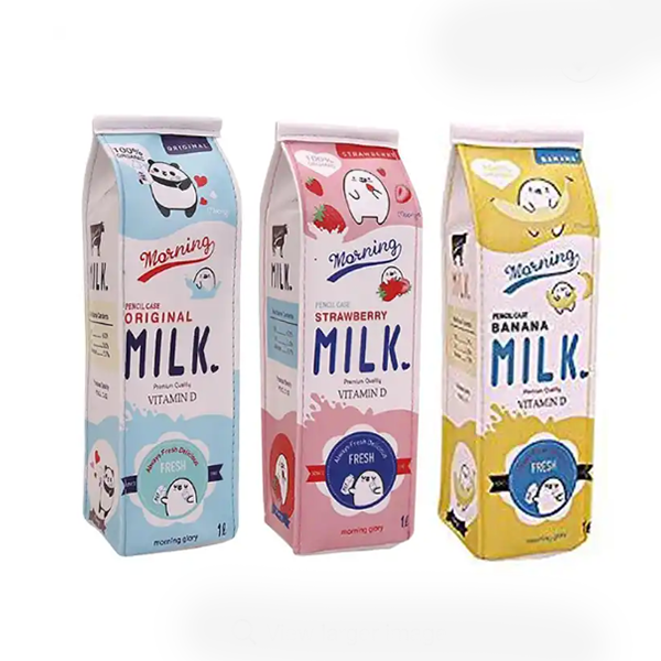 2023 Custom Personalized pink pu leather School Kawaii Milk Cartoon stand up Zipper Pencil Case For Kids