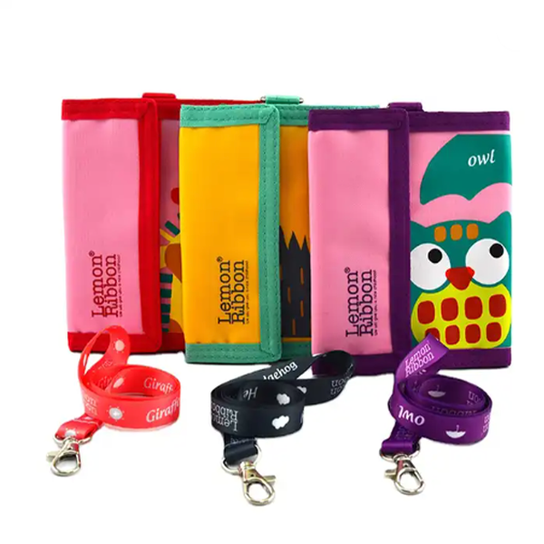 2023 Cute credit cards wallet owl Pattern lanyard 840d with soft PVC cards holding pocket-sized 3 folding mini wallet