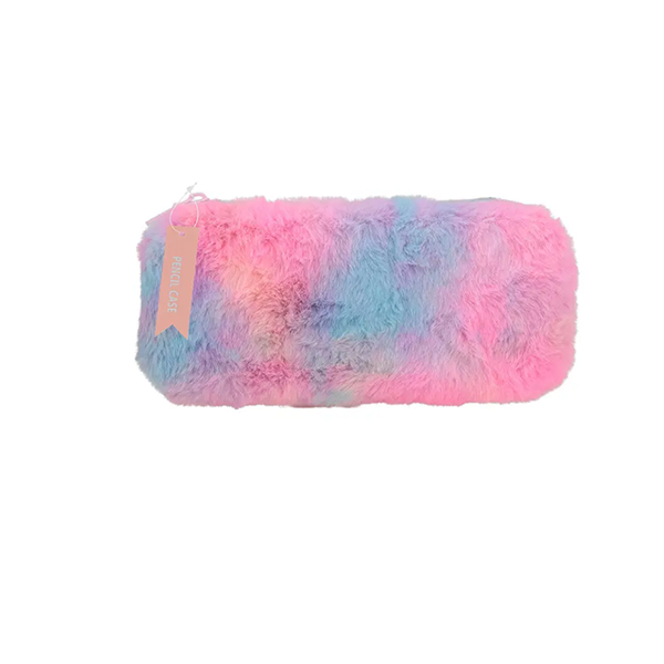 2023 Cute Custom Logo Rainbow Tie Dye Furry Cover Eva Cheap Colorful Pencil Case For Girls