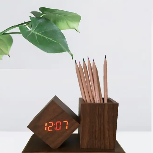 2023 Factory Supply Wooden Pen Holder With Digital LED Clock wireless phone charger wireless charger 3 in 1