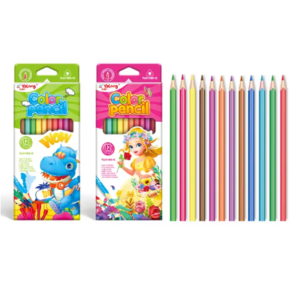 2023 Wholesale Custom New Poplar Wood Cartoon 4 Styles 12 Colored Pencils Set For Kids