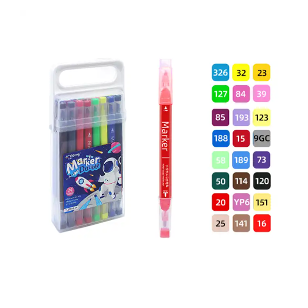 24 Colors Handle Non-Toxic Washable Marker Pens Square Handle Dual Tip Markers Set For Kids