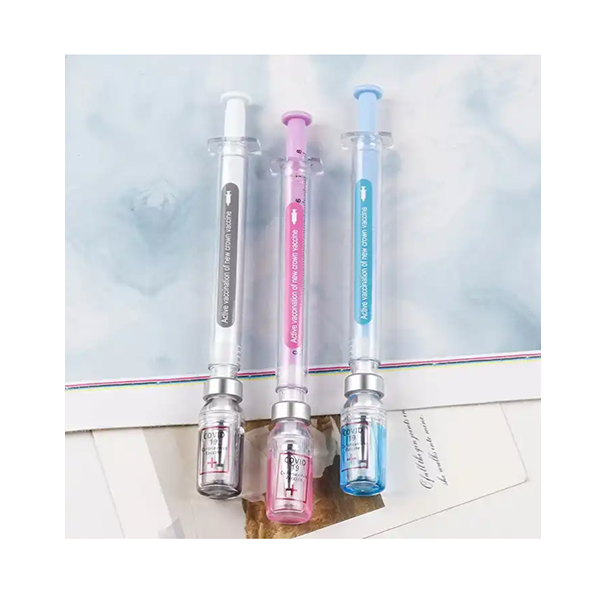 3 Colors syringe gel pen with cute printing plastic body cartoon design