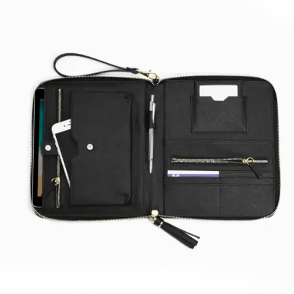 A4 Saffiano Leather Multifunctional Presentation Folder Zip Pocket Folders