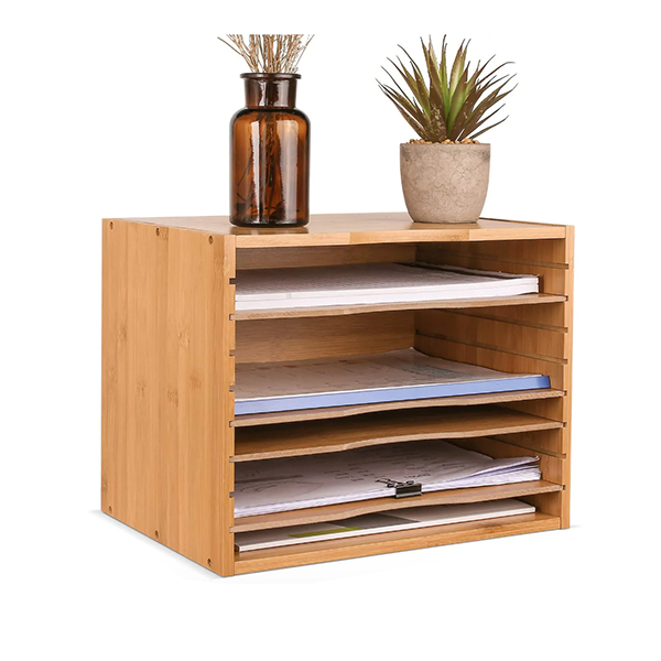 Bamboo Desk File Sorter Organizer Document Letter Mail Tray Sorter with 4 Adjustable Shelves/Homex_BSCI Factory