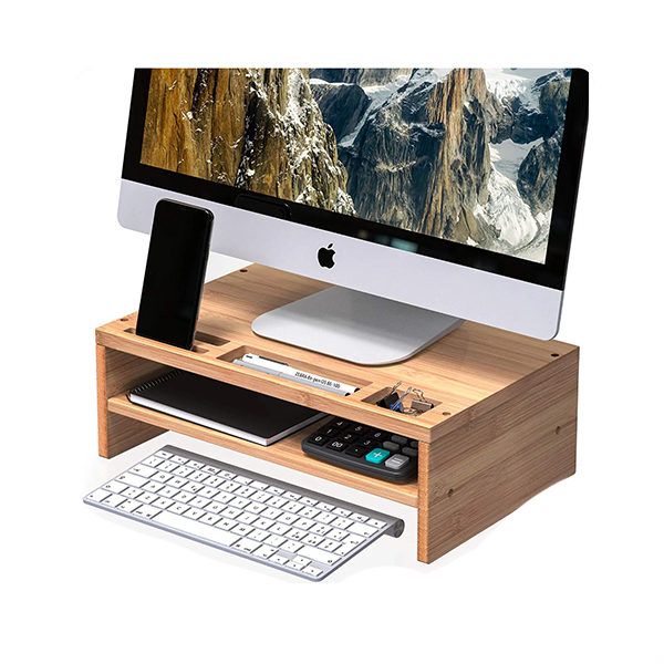 Bamboo Desk Monitor Riser Stand with Storage Organizer 2 Shelf for for Computer Laptop/Homex_BSCI Factory
