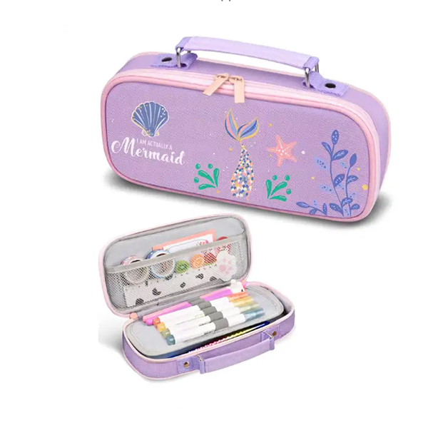 Bulk sales custom kawaii papeleria purple mermaid style girls stationery bag Case For School Pen Bags Zipper Pencil Pouch