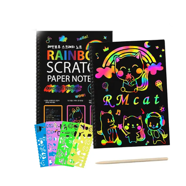 Chengji customized black printing rainbow scratch paper book art creation magic coloring scratch art drawings books for kids