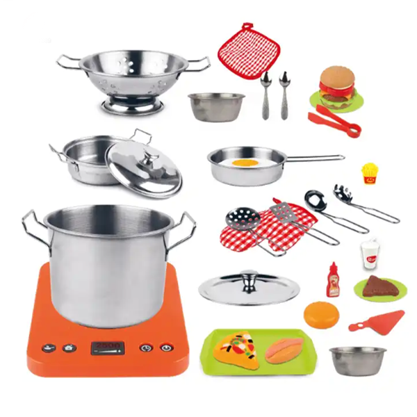 Chengji simulation miniature kitchen toys cooking cookware set stainless steel tableware toy pretend play cooking set for kids