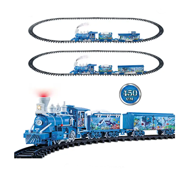 Chengji steam electric music light track smoke railway battery ocean sightseeing plastic rail train set toys for boys train