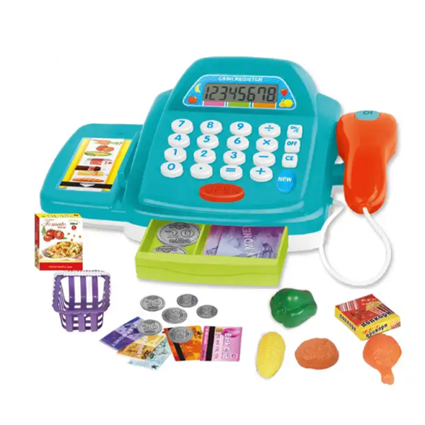 Chengji supplier cash register new kids toy calculator function diy supermarket electric cash register toy set for children kids