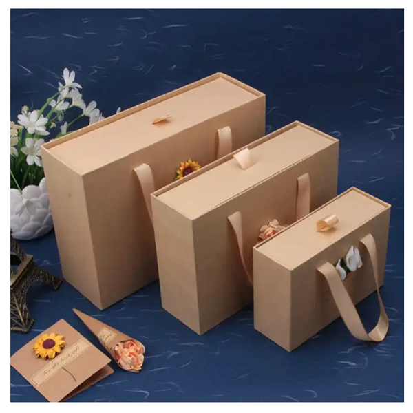 China Factory Custom Logo Eco friendly Brown Kraft Packaging Drawer Box with Handle