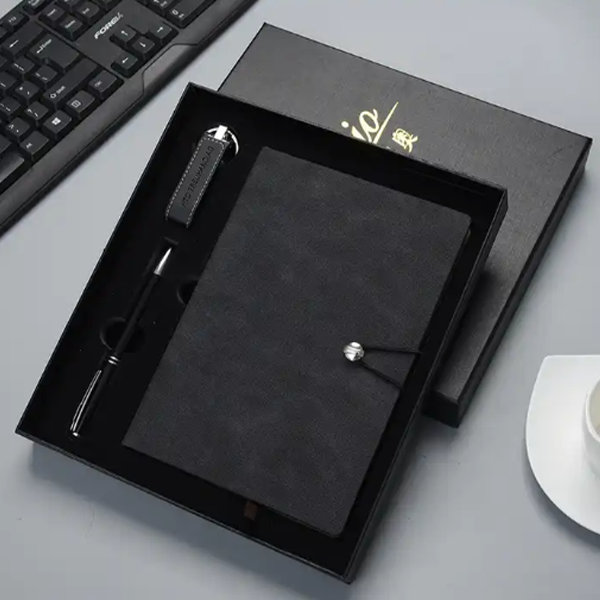 Company Activities Black Luxury Keychain Pen Softcover Custom Notebook Corporate Business Gift Set