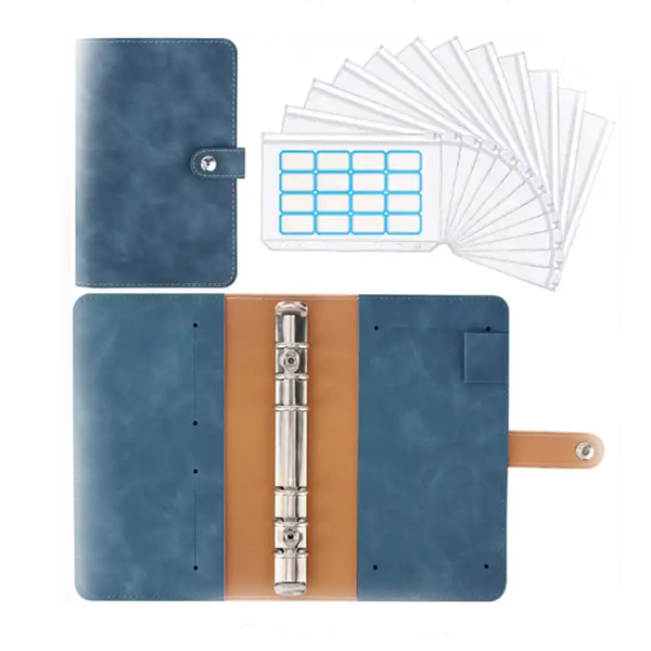 Custom A5 A6 Size 6-Ring Plastic Zipper Envelope Soft PU Leather Loose-Leaf Folder Budget Binder