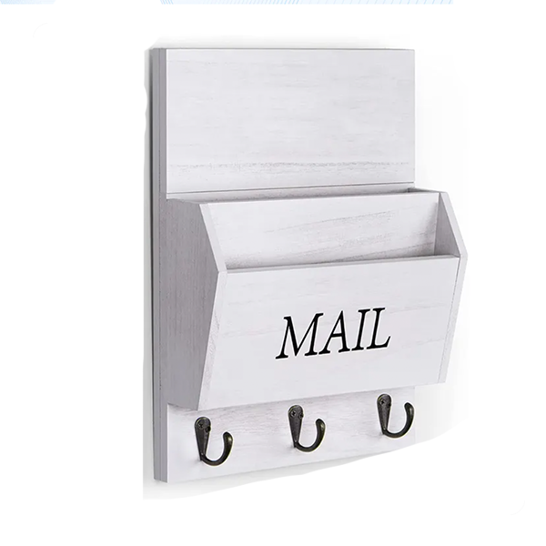 Custom Decorative Rustic Wooden Bill Mail Key Organizer Wall Mount with Key Hook for Wall