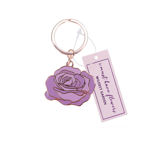 Custom Desig Floral Purple Flower Metal Key Chain