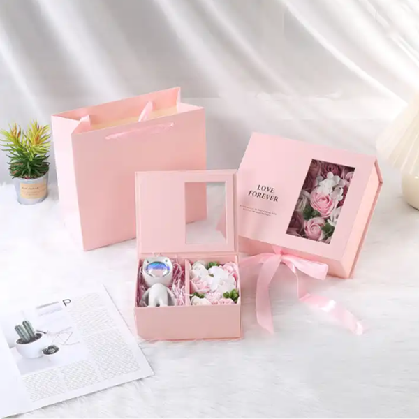 Custom Design Rigid Cardboard Gift Packaging PVC Magnetic Lid Box with Clear Window