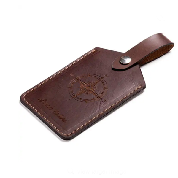 custom laser logo cruise luggage tag holder antique leather cover name tag for luggage