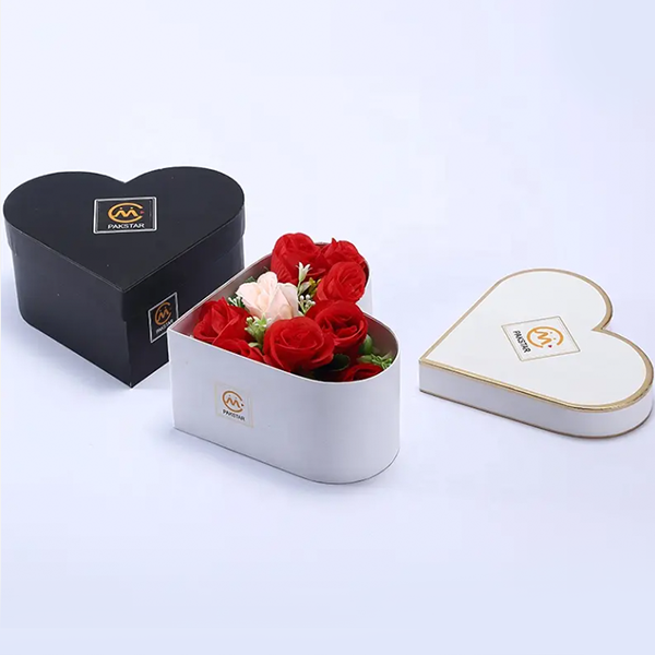 Custom logo black white flowers packaging heart shaped boxes for gift pack