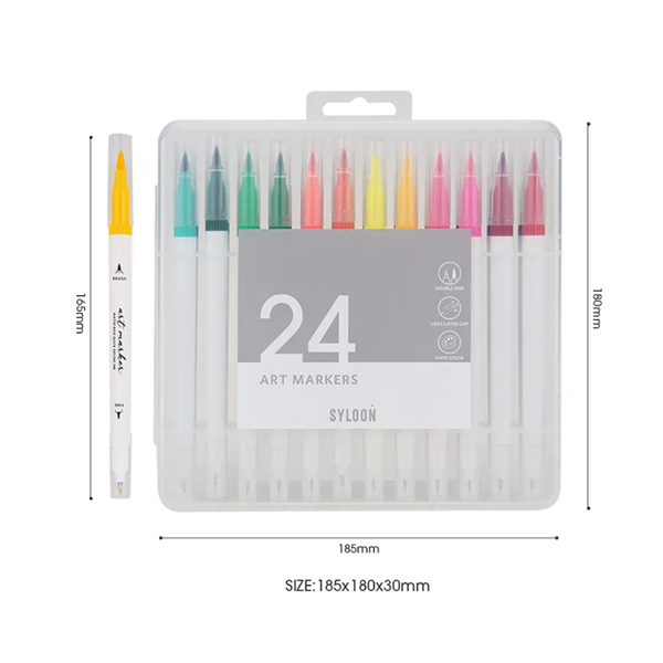 Custom Logo Hot Sale 24 Colors Double Ended White Alcohol Colorful Fine Brush Tip Art Markers Pen Set