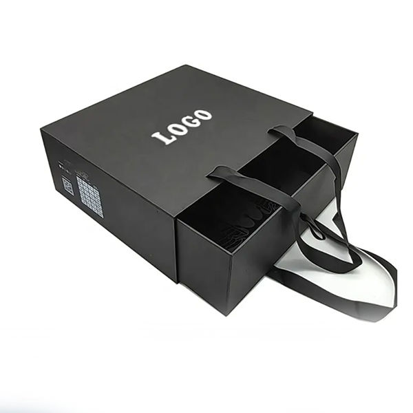 Custom logo luxury black cardboard empty paper drawer shoes boxes for packiging with handle