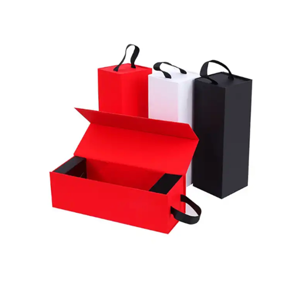Custom Logo Printed Luxury Foldable Magnetic Single Champagne Red Wine Cardboard Gift shipping Boxes Packaging with Handle