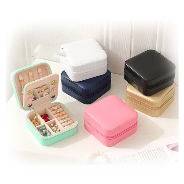 Custom Logo PU Leather Travel Jewelry Storage Box Women Girls Portable Ring Jewelry Box Packaging