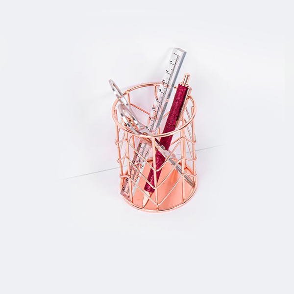 Custom Metal Mesh Office Desk Organizer Rose Gold Electroplated Pen Holder Organiser Set
