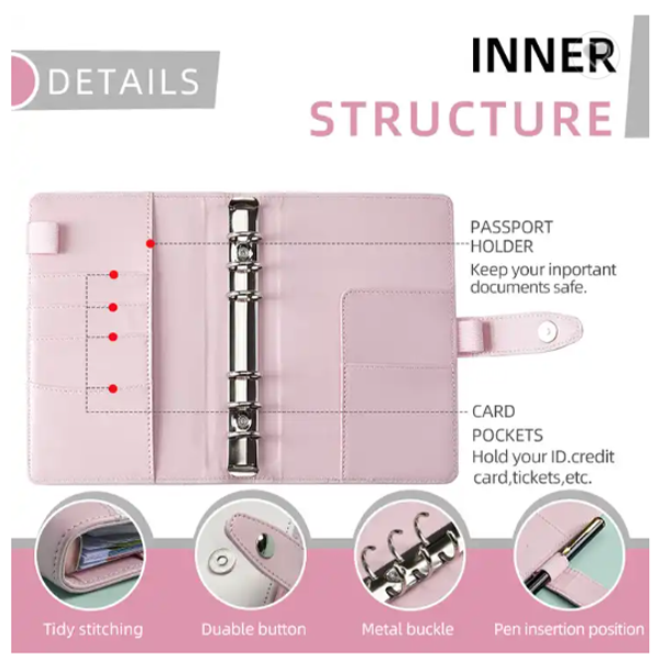 Custom Money Organizer Note Book Pu Leather Planner A6 Budget Binder With Cash Envelopes