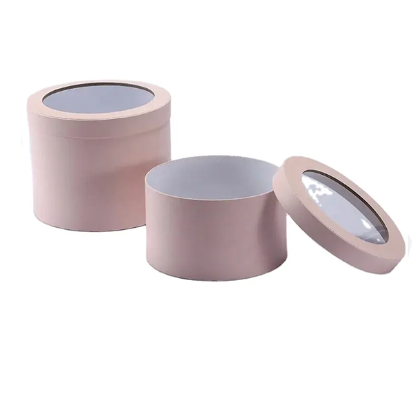 Custom pink paper rose packing valentine bouquet flower packaging box with window