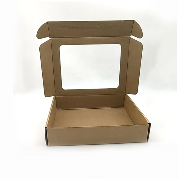 Custom print corrugated shipping Kraft cardboard box packaging with clear window