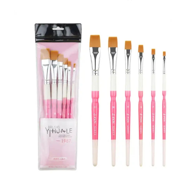Customizable LOGO brush set for watercolor gouache acrylic painting pink-white color flat paint brush for water color drawing