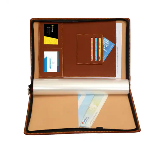 Customized logo B4 pu leather brown medical record pocket folders for office