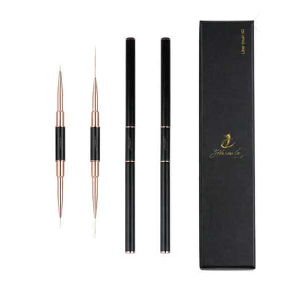 Customized nail painting brush custom logo nail art brush set Two Side Nail Brush with customized gift box packaging