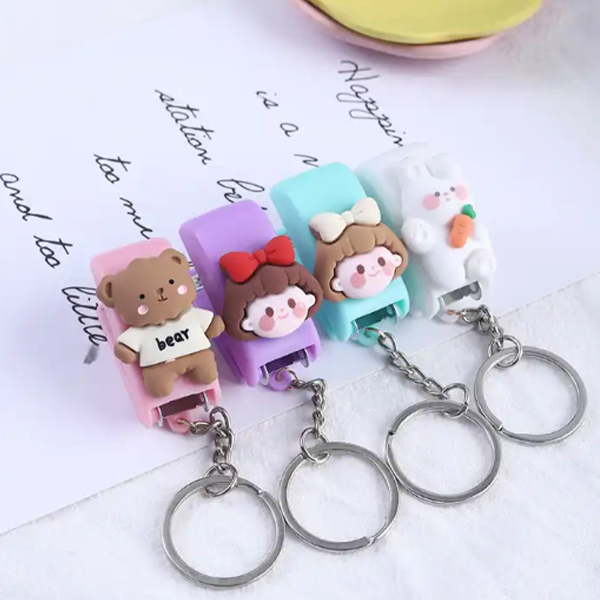 Cute cartoon mini stapler keychain macaron color student small creativity stapler convenient key ring pendant stapler