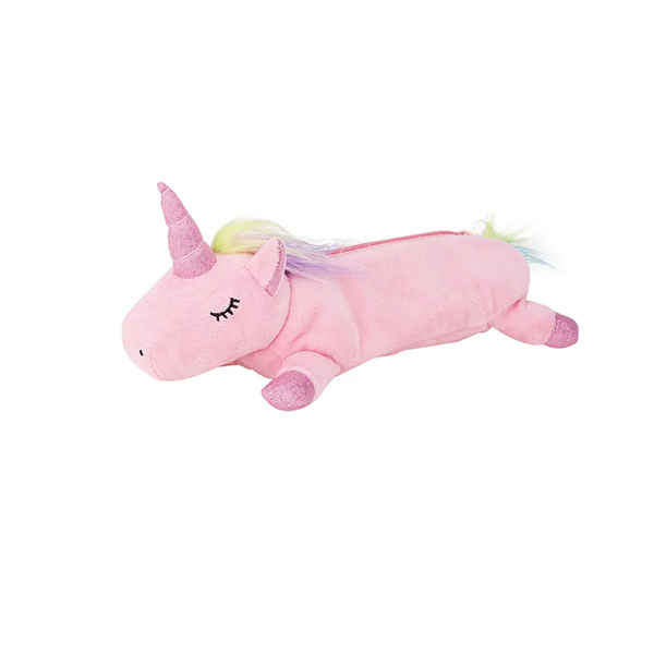 Cute Furry And White Lining Pink Unicorn Cartoon Design Logo Custom Printed For School Fluffy Pencil Bag