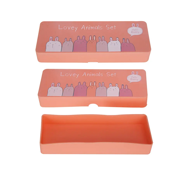 Cute Silicon Pink Color With Bunny Design Logo Custom Printed For School Plastic Pencil Case