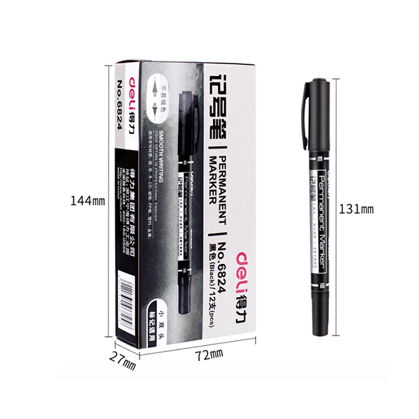 Double Headed Marking Pen Small Tick Size Head Fine Nib Oil Ink Permanent Pen Deli Black Marker Pen
