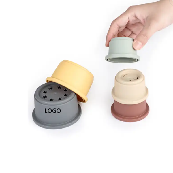 Eco Friendly Colors Silicone Stacking Cups Kids Educational Montessori Sensory Toys Baby Stacking Toys