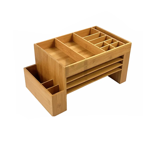 Elegant Design Home Office Multi-Level Desk with Organizer Locker and Letter Tray, Natural Bamboo, 20 x 40 x 21,5 cm