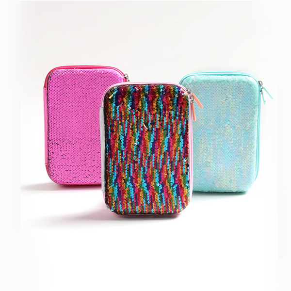 EVA Custom Logo Pencil Pouch Bag Holographic Green Sequin Front Cover School Supplies Pencil Case for Girls