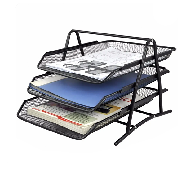 Factory Office Black Desk Organizer Metal Mesh 3 Tier Document File Tray Desktop Letter Tray Organizer