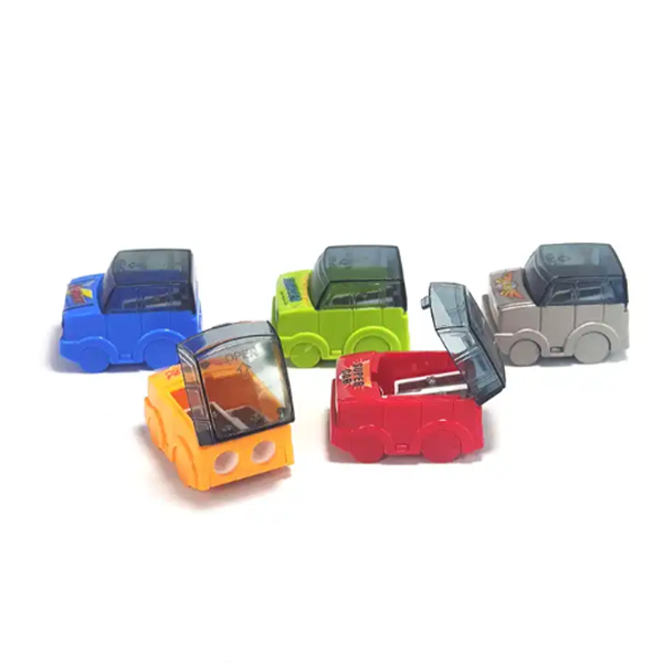 Factory sales customized logo stationery supplies 12mm 8mm double holes plastic car shaped Small Pencil Sharpener for kids