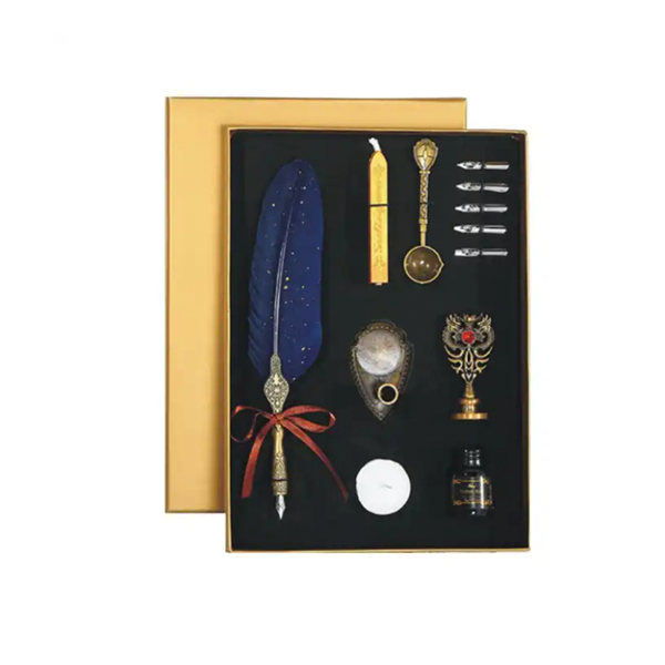 Factory Supply 2020 Metal Ink Dip Pen Gifts For Men, Feather Shape Pen Custom Box Office Work Writing Gift Set