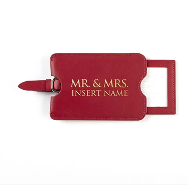 Hidden name card design Full Grain leather sweet luggage tag wedding favor